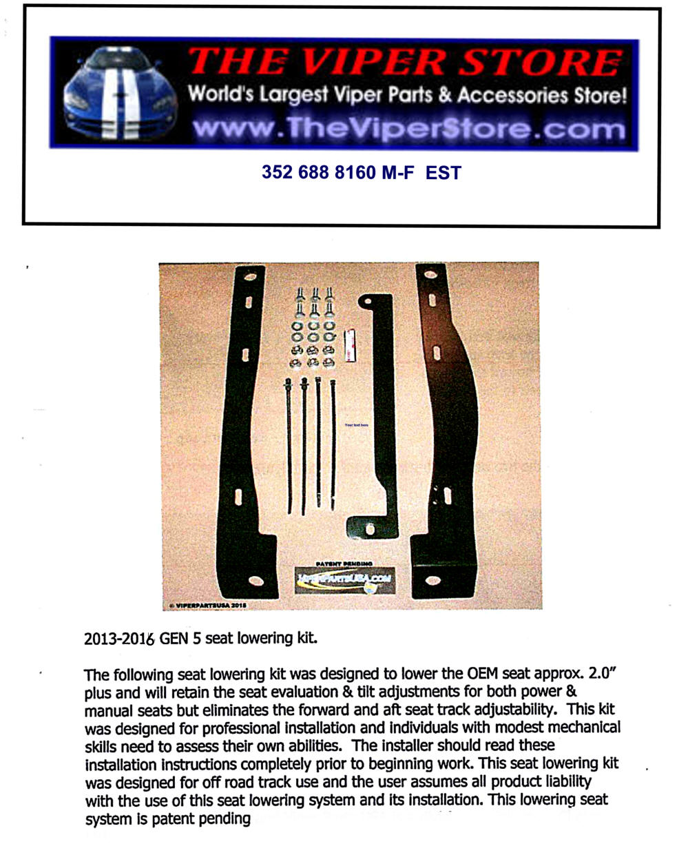 This Frame has opened up into a New Window Dodge Viper Gen5 Lowering Kit Directions